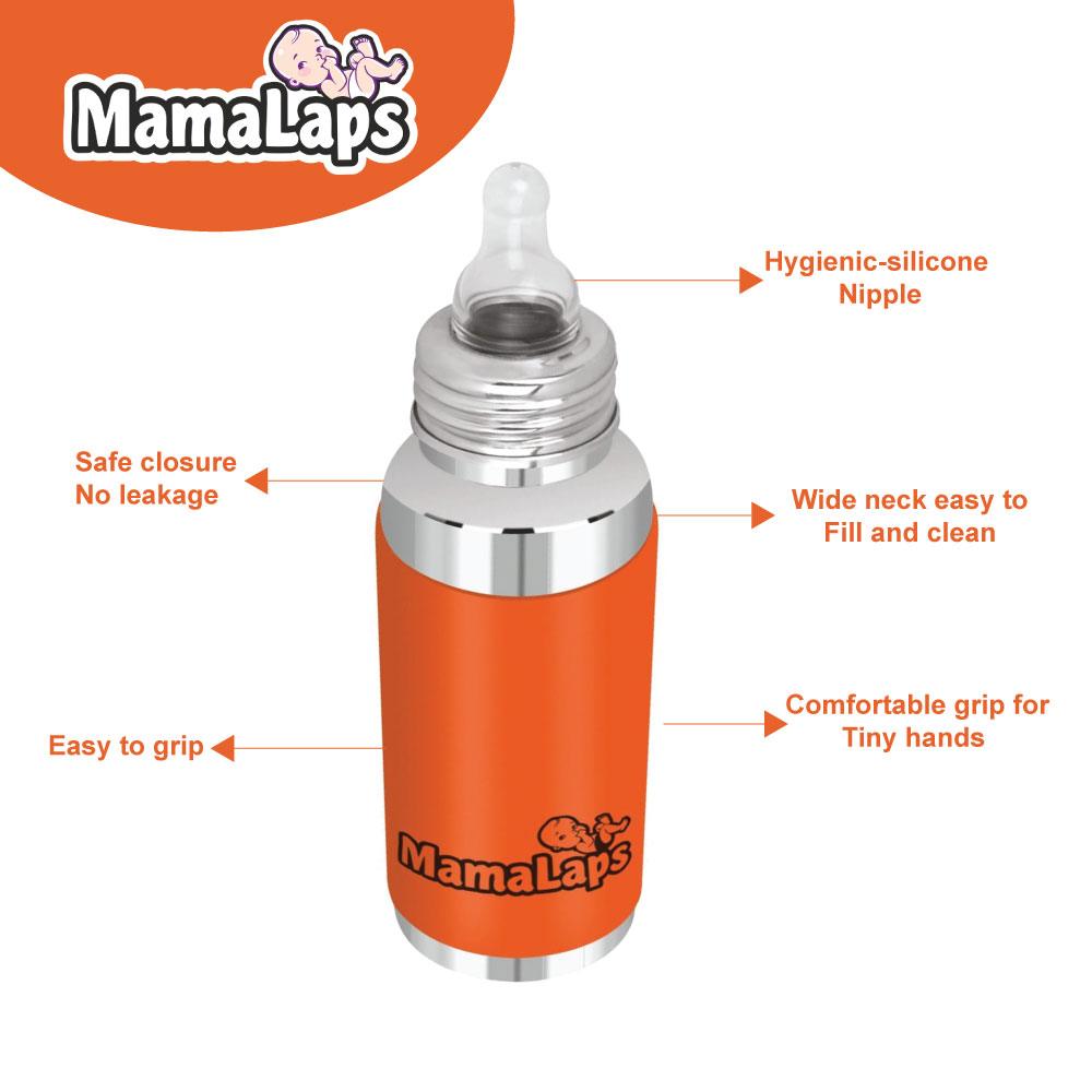 HYGIENIC silicone nipple and 304-grade stainless steel used in this steel feeding bottle ensure that it is completely hygienic and safe for your baby kids.