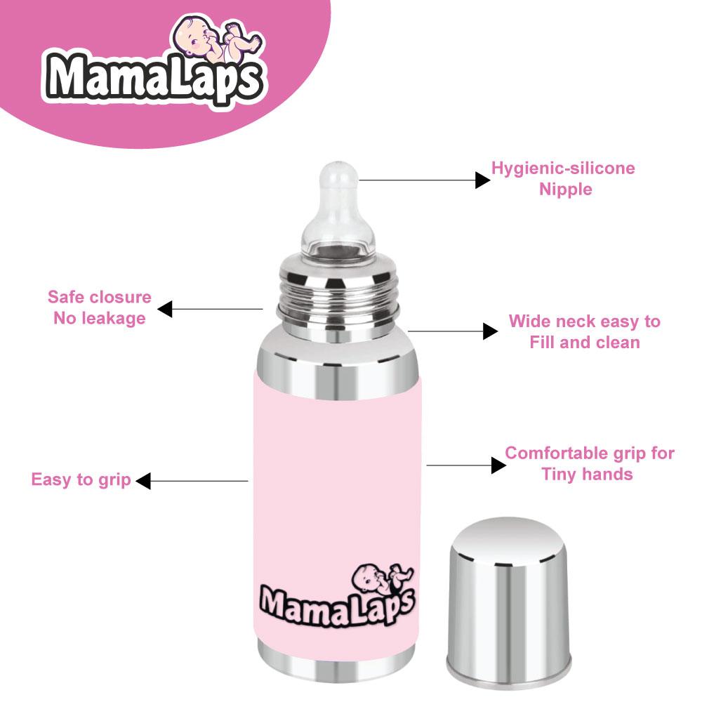 HYGIENIC silicone nipple and 304-grade stainless steel used in this steel feeding bottle ensure that it is completely hygienic and safe for your baby kids.